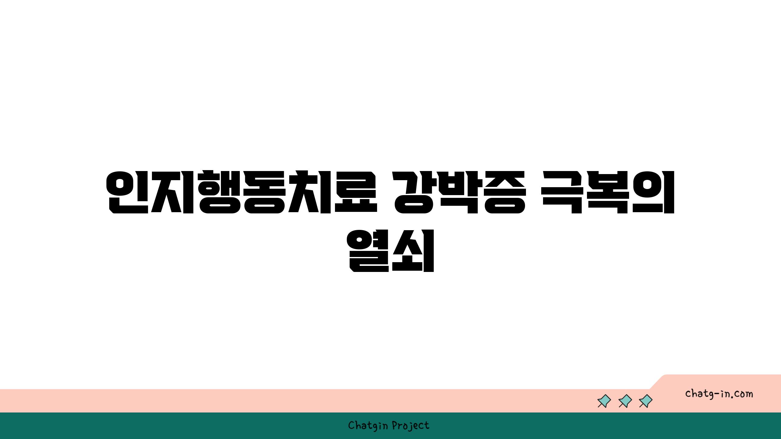 인지행동치료는 강박 사고와 행동의 근본적인 원인을 파악하고, 이를 변화시키는 데 초점을 맞춘 치료법입니다.